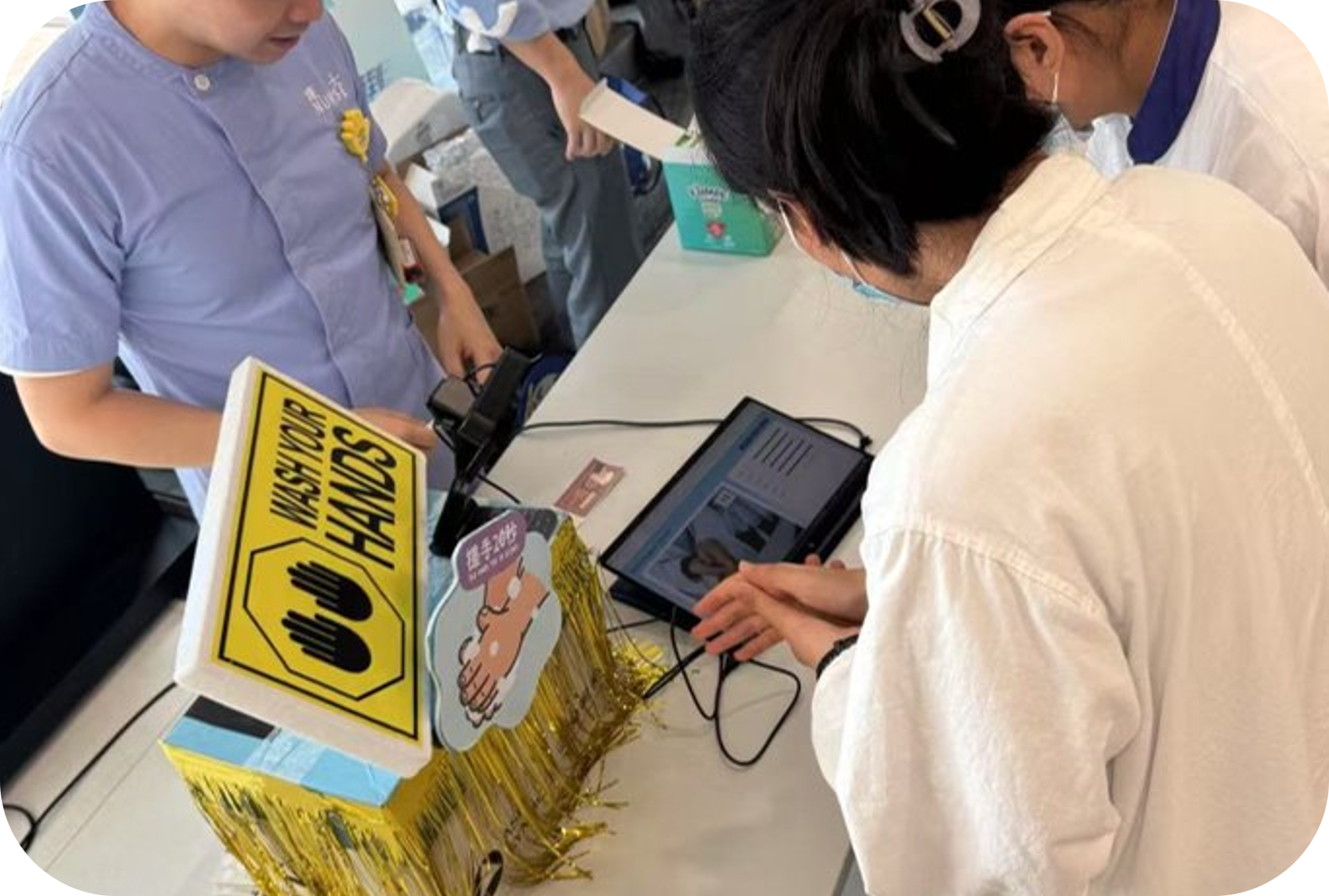 Hand-Heart™ is an AI-driven augmented reality hand hygiene platform designed to enhance training quality, auditing efficiency, and compliance with international hand hygiene standards. By combining computer vision, deep learning, and AR interaction, Hand-Heart delivers real-time guidance and objective assessment without disrupting clinical workflows.